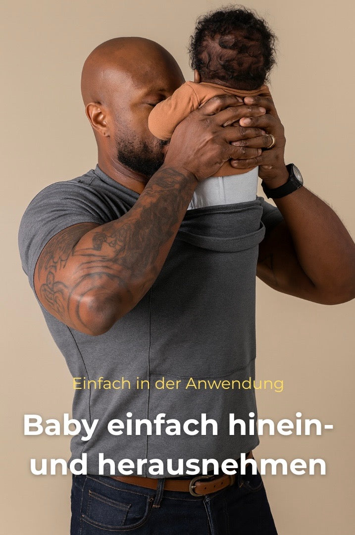"Sobald ich ihn in das Shirt setze, wird er ruhig. Er hört meinen Herzschlag und ist ganz nah bei mir. Für kurze Momente im Alltag perfekt. Meine Frau ist auch begeistert."