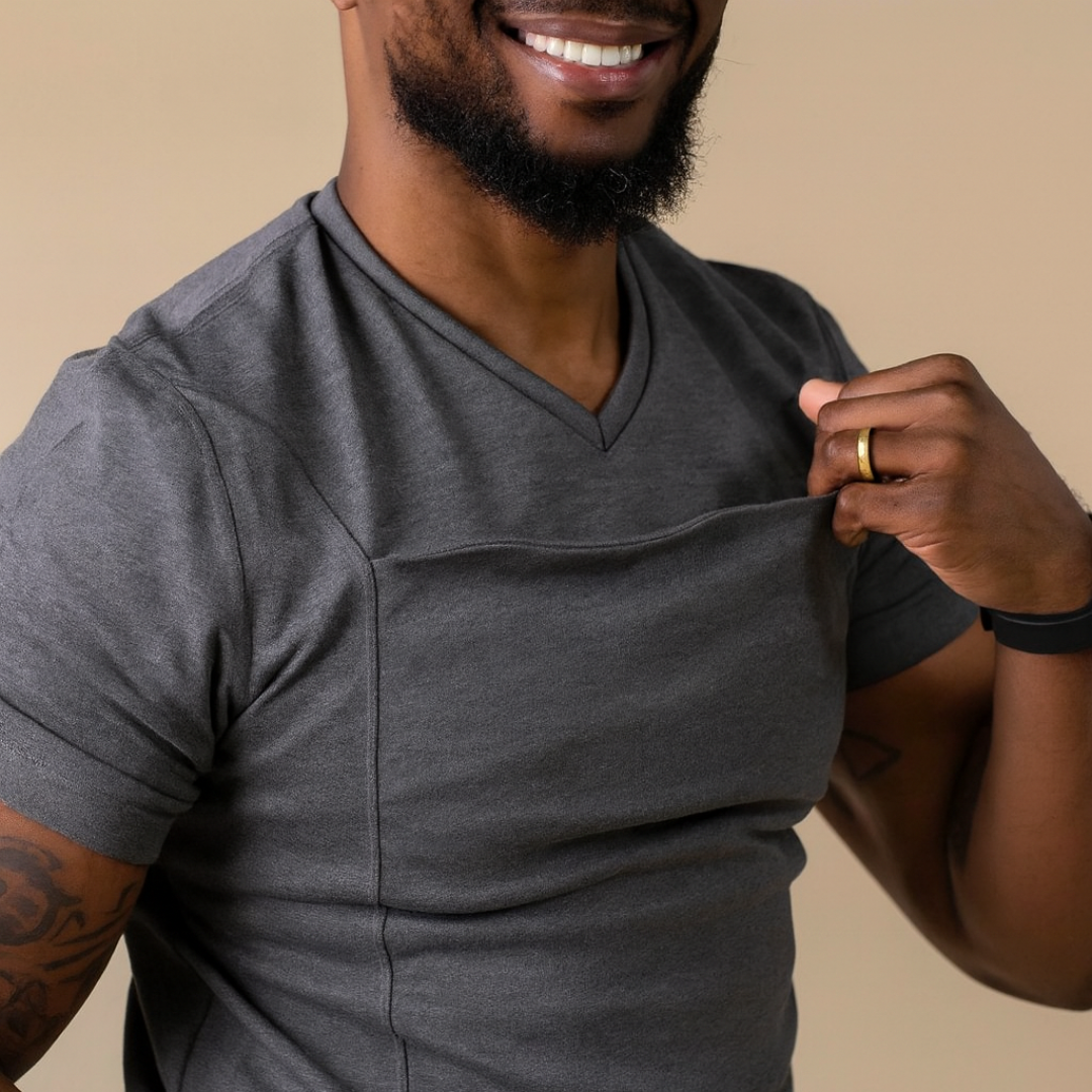 "Man merkt, dass das Shirt für Männer gemacht ist. Sitzt gut, fühlt sich hochwertig an und wirkt nicht wie ein klassisches Baby-Teil. Ich trage es fast täglich zu Hause."
