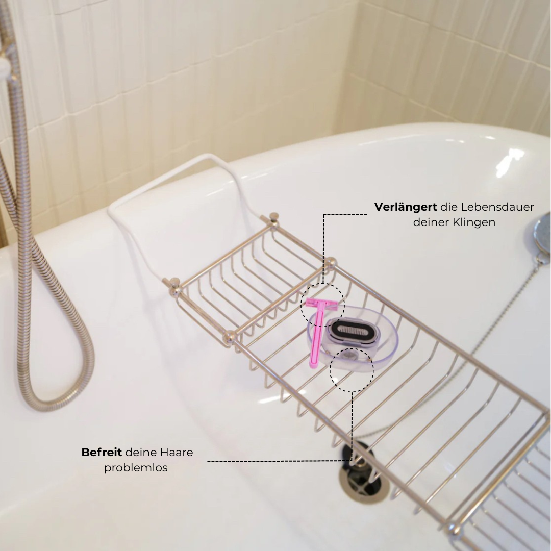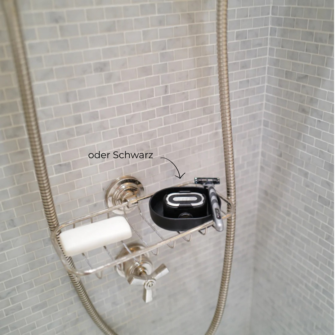 Die druckvollen Wasserstrahlen spülen Haare und Rückstände mühelos aus deinen Klingen und halten das übliche Rasur-Chaos in einer kleinen Schale zurück.