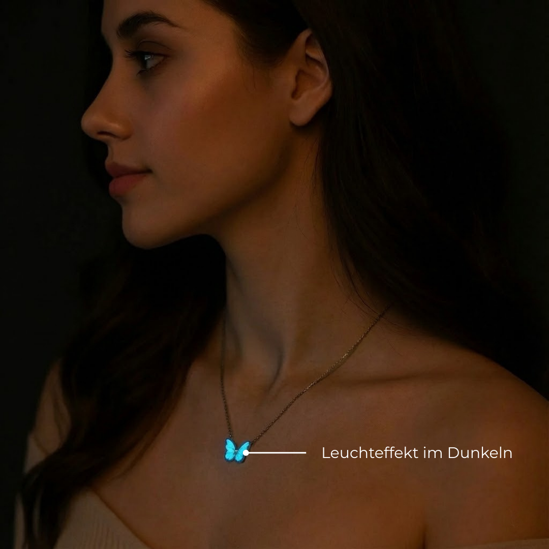 "Wunderschöne Kette! Der Schmetterling ist dezent, aber trotzdem ein Hingucker. Und das Leuchten abends ist wirklich etwas Besonderes."